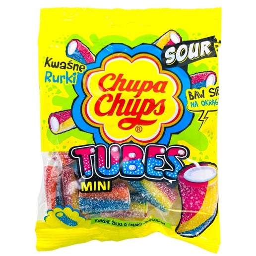 Chupa Chups Import Mini Sour Gummy Tubes Peg Bag 90g 18ct