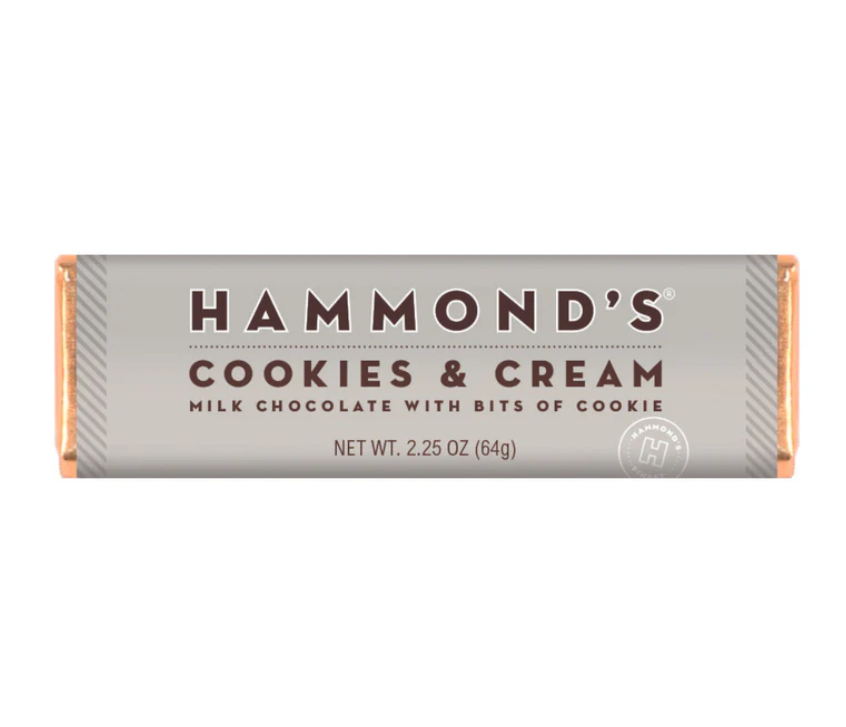 Craving for a delectable treat? Look no further than Hammond’s Cookies and Cream Chocolate bar, a delicious blend of milk chocolate and bits of chocolate cookie. These bars are simply cookie-riffic and sure to satisfy your sweet tooth. Make them the yummiest part of your day and indulge in their irresistible taste.