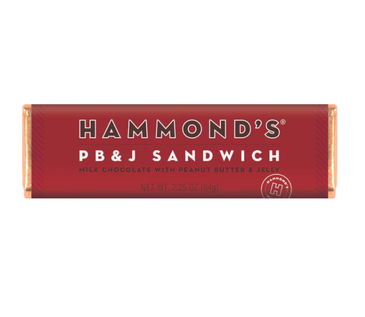 Satisfy your sweet tooth and nostalgia with Hammond’s Peanut Butter and Jelly Chocolate Bar. This playful twist on the classic sandwich combines creamy peanut butter and sweet jelly filling surrounded by decadent milk chocolate. Indulge in the perfect balance of flavors and textures that will remind you of childhood memories. Get ready to fall in love with this unique and delicious chocolate bar from Hammond’s.